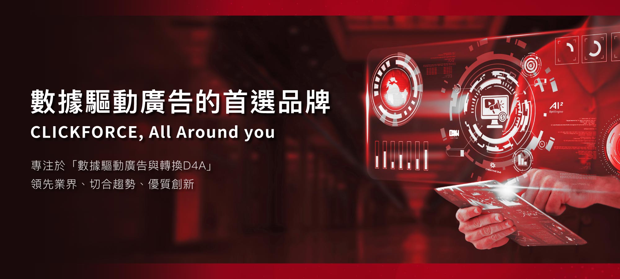 專注於「數據驅動廣告與轉換D4A(Data for Advertising & Action)」,致力於打造「領先業界、切合趨勢、優質創新」的數位廣告行銷服務。